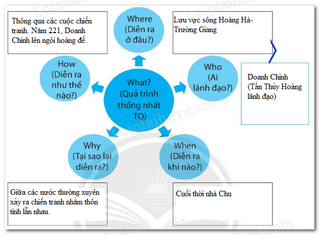 Hãy hoàn thiện sơ đồ 5W1H về quá trình thống nhất đất nước của Tần Thủy Hoàng.