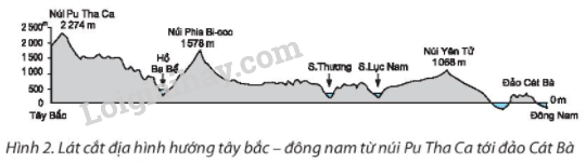 + Tên và độ cao của các đỉnh núi: Núi Pu Tha Ca (2 274 m), núi Phia Bi-ooc (1 578 m), núi Yên Tử (1068 m), đảo Cát Bà.
