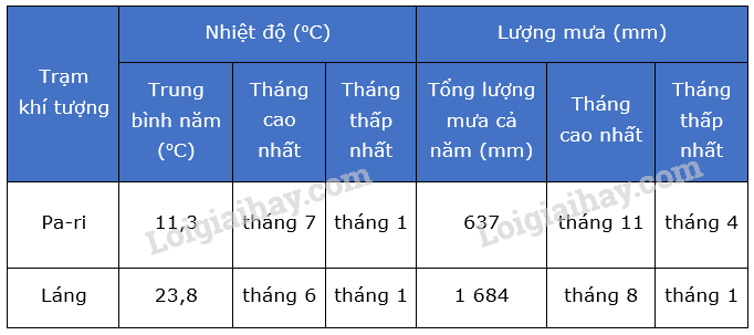 Sự khác biệt về nhiệt độ và lượng mưa của hai trạm khí tượng Pa-ri và Láng: