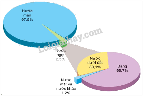 Hình 1. Tỉ lệ các thành phần của thủy quyển