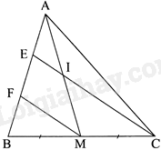 Cho tam giác nhọn ABC, kẻ trung tuyến AM \(\left( {M \in BC} \right)\). Gọi I là trung điểm của AM, đường thẳng CI cắt AB tại E. Từ M kẻ đường thẳng song song với CE cắt AB tại F. Chứng minh: