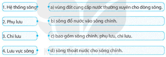 Dựa vào kiến thức đã học về sông và hình 1 SGK để làm bài.