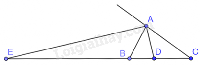 Vì AE là tia phân giác của góc ngoài tại đỉnh A của tam giác ABC nên nên theo tính chất của đường phân giác của tam giác ta có: \(\frac{{EB}}{{EC}} = \frac{{AB}}{{AC}} = \frac{2}{3}\) nên \(EB = \frac{2}{3}EC\)