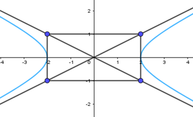 Trong mặt phẳng tọa độ Oxy, cho hypebol có phương trình chính tắc là \(\frac{{{x^2}}}{4} - \frac{{{y^2}}}{1} = 1\)