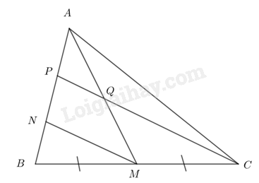 Cho tam giác ABC có AM là đường trung tuyến, các điểm N, P phân biệt thuộc cạnh AB sao cho \(AP = PN = NB\). Gọi Q là giao điểm của AM và CP. Chừng minh: