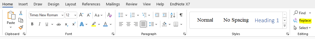 - Nháy chuột vào lệnh Replace ở cuối dải lệnh Home.