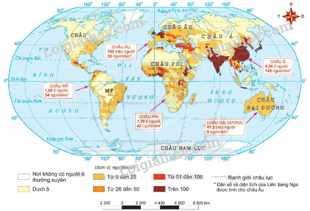 - Dân số thế giới phân bố không đồng đều giữa các châu lục.