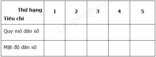 Dựa vào hình 22.2 trong SGK, em hãy xếp hạng các châu lục theo từng tiêu chí đã cho vào bảng sau: