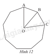 Cho đa giác đều 9 cạnh có tâm O và AB, BC là hai cạnh đa giác (Hình 12).