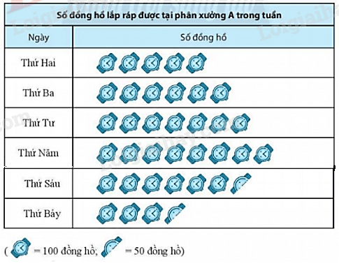 b) Thứ Bảy phân xưởng lắp ráp được ít đồng hồ nhất.