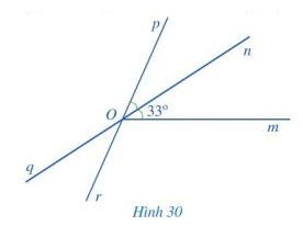 Vì \(\widehat {qOr} = \widehat {pOn}\) (2 góc đối đỉnh), mà \(\widehat {pOn} = 33^\circ \) nên \(\widehat {qOr} = 33^\circ \)