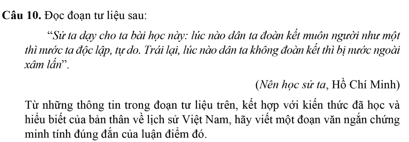 Trả lời câu hỏi câu 10 trang 9 SBT Lịch sử 10