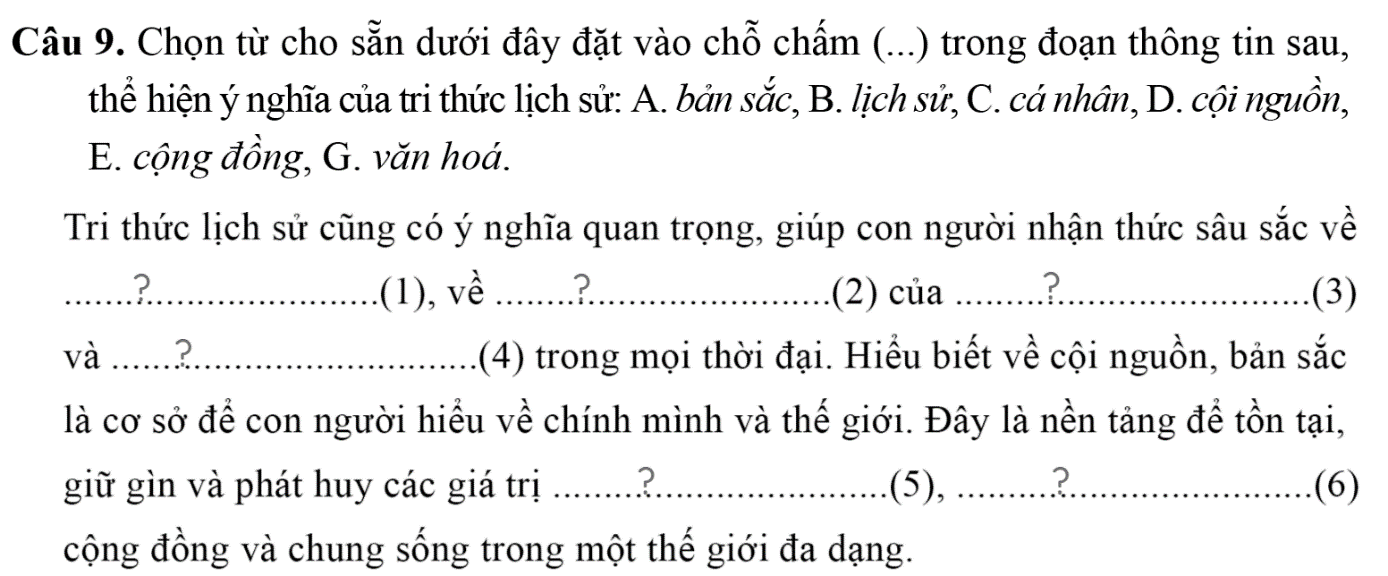 Câu 2. Nội dung nào sau đây phản ánh không đúng ý nghĩa của tri thức lịch sử đối với cuộc sống?