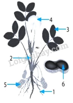 a) (1) Rễ, (2) Thân, (3) Lá, (4) Hoa, (5) Củ, (6) Hạt.