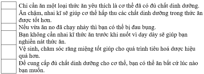 Viết chữ đ vào ô trống trước phát biểu đúng, chữ s vào ô trống trước phát biểu chưa đúng.