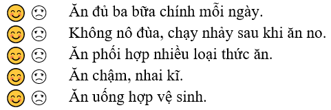 Tô màu mặt 😊 trước việc em đã làm được, tô màu mặt ☹ trước việc em chưa làm được.