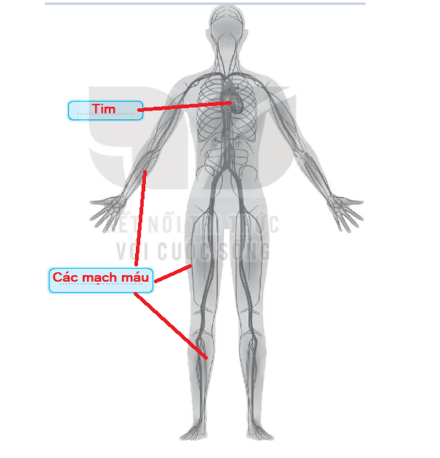 Hãy viết tên các bộ phận của cơ quan tuần hoàn vào ô chữ và nối vào các bộ phận trên hình cho phù hợp.
