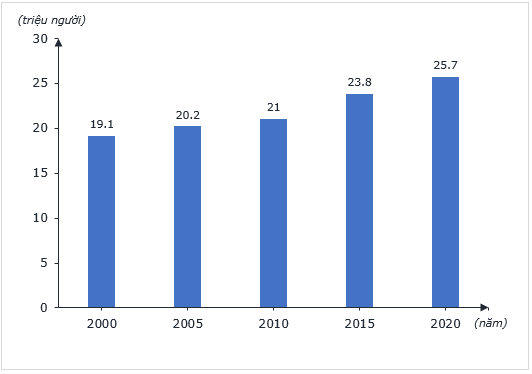 Dựa vào bảng Số dân và tỉ suất gia tăng dân số tự nhiên của Ô-xtrây-li-a, giai đoạn 2000 – 2020, em hãy vẽ biểu đồ cột thể hiện quy mô dân số của Ô-xtrây-li-a.