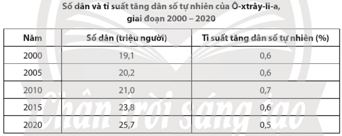 - Nhận xét quy mô và sự gia tăng dân số Ô-xtrây-li-a, giai đoạn 2000 – 2020.
