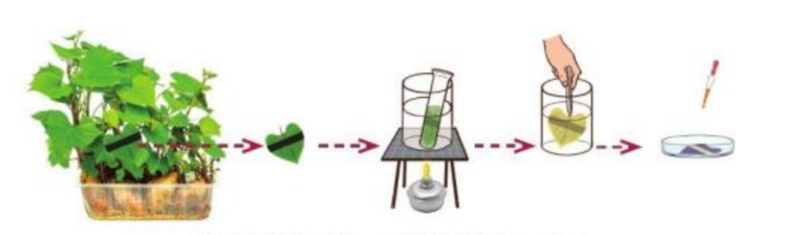 Hình 20.2 Thí nghiệm phát hiện tinh bột trong là cây