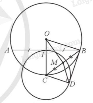 Lấy M là trung điểm của CB nên DM, IM lần lượt là đường trung tuyến của 2 tam giác vuông IBC và DCB, nên ta có \(MB = MC = MD = MI = \frac{{BC}}{2}\).