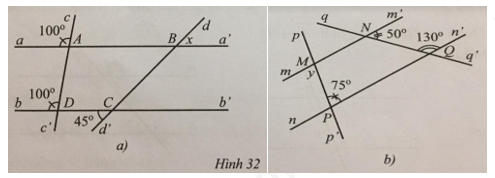 Suy ra \(x = \widehat {bCd'} = 45^\circ \) (hai góc so le ngoài).