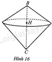 Hình 16 minh hoạ hình nón đỉnh B với đường cao BH và hình nón đỉnh C với đường cao CH có chung đường tròn đáy tâm H.