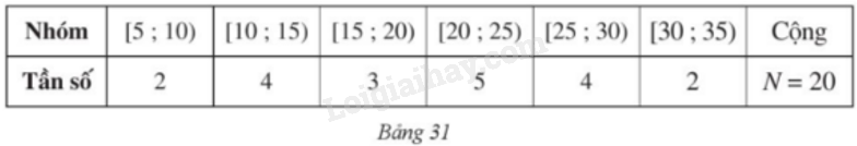 Mẫu số liệu ghép nhóm về lượng rau (đơn vị: tấn) thu được trong một năm của các đội sản xuất ở một hợp tác xã như Bảng 31 sau: