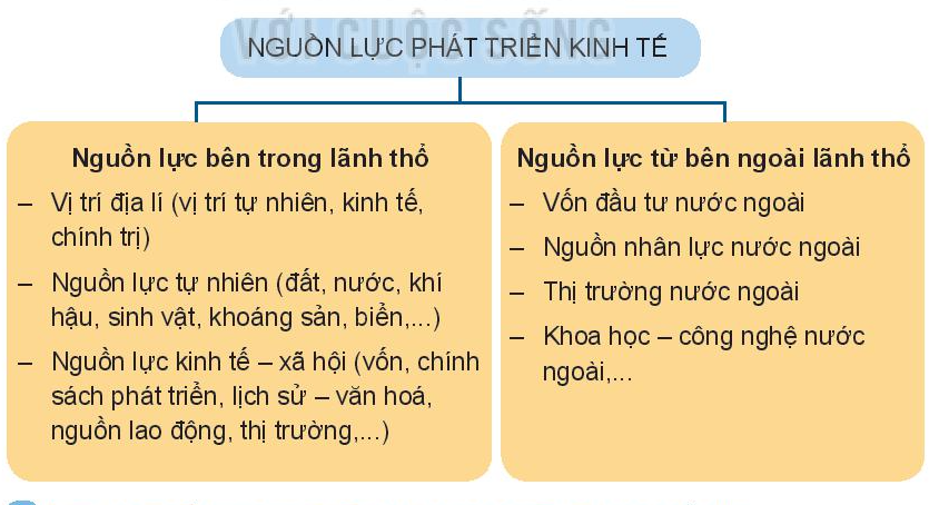 Hãy nêu các nguồn lực từ bên ngoài mà một lãnh thổ có thể thu hút, tận dụng nhằm phát triển kinh tế.