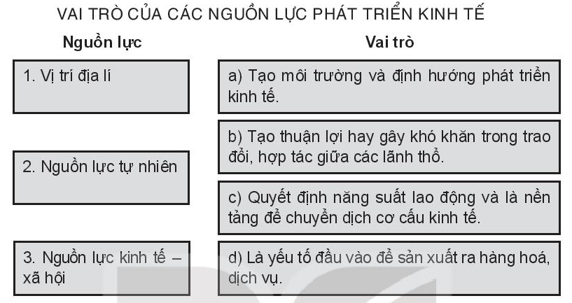 - Dựa vào kiến thức đã học về vai trò của các nguồn lực để nối cho phù hợp