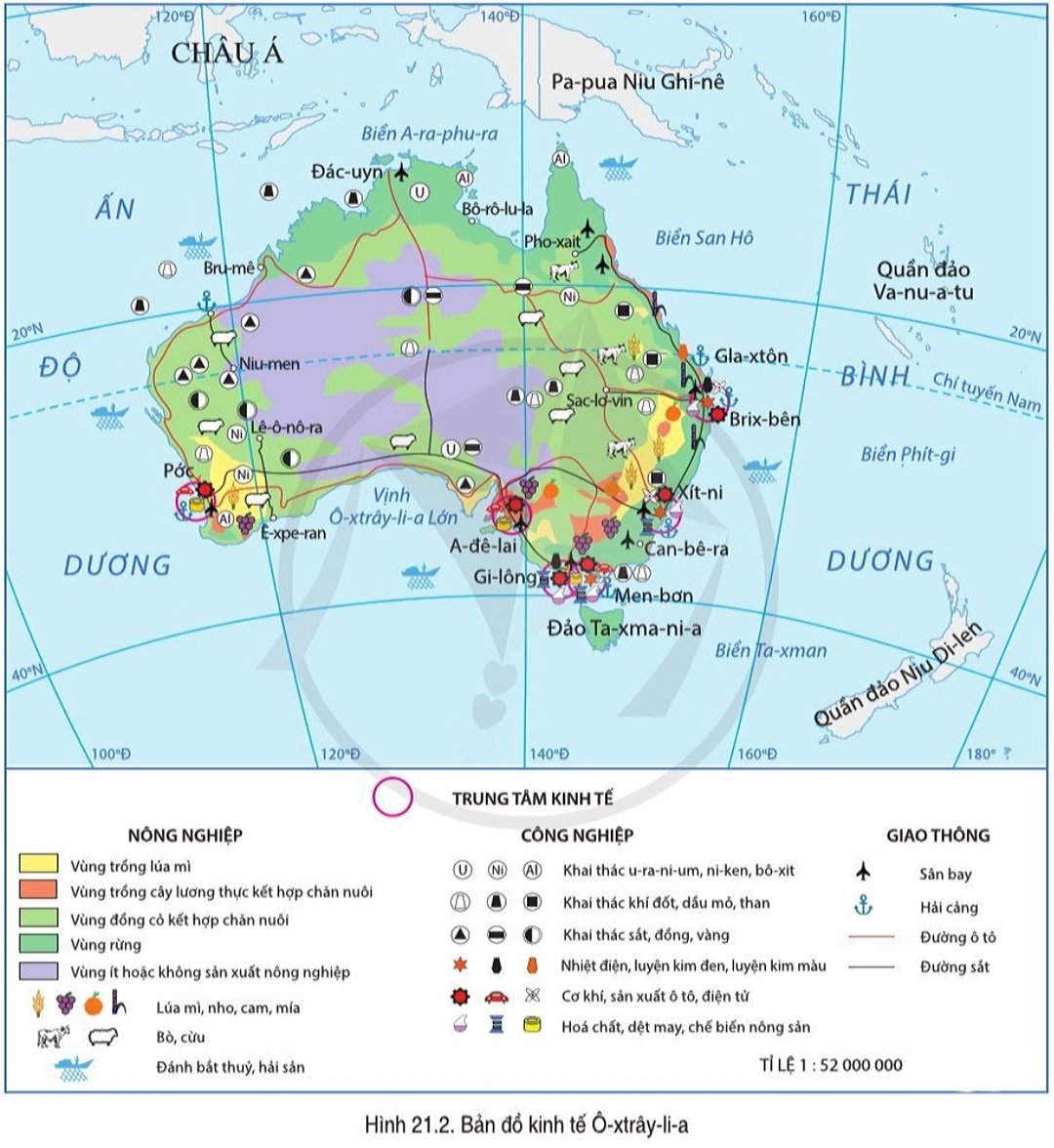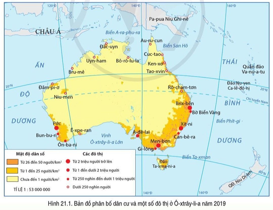 Đọc thông tin mục “Đặc điểm dân cư của Ô-xtrây-li-a” và quan sát hình 21.1.