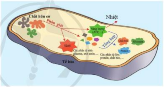 Hình 21.3. Sơ đồ mối quan hệ giữa tổng hợp và phân giải chất hữu cơ ở tế bào |