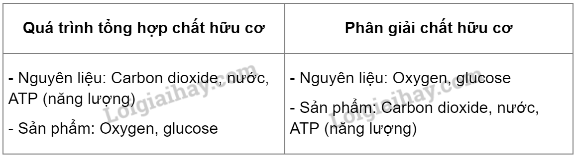 Quá trình tổng hợp và phân giải chất hữu cơ ở tế bào lá có mối quan hệ hai chiều.
