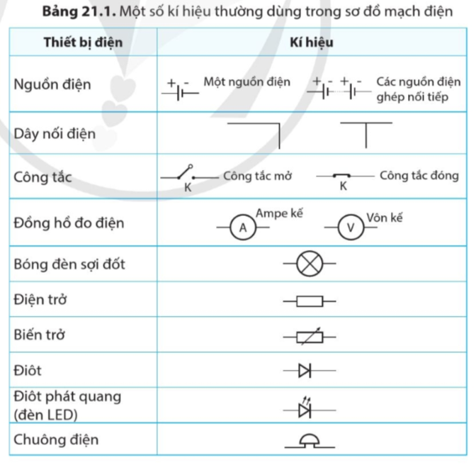 Dựa vào kí hiệu trong bảng 21.1 để vẽ sơ đồ.