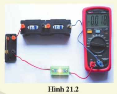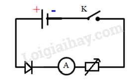 Dùng các kí hiệu cho ở bảng 21.1, vẽ sơ đồ mạch điện hình 21.2: một pin, một công tắc, một biến trở, một đèn LED, một ampe kế.