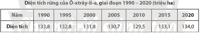 - Nhận xét sự biến động diện tích rừng của Ô-xtrây-li-a trong giai đoạn 1990 – 2020.