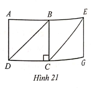 Hai hình vuông ABCD và BEGC như nhau ghép lại thành hình chữ nhật AEGD. Nối B với D, E với C ta được hình bình hành BECD (Hình 21). Hãy tính diện tích hình bình hành đó, biết chu vi của hình chữ nhật AEGD là 216 cm.