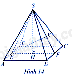 Cho hình chóp tứ giác đều \(S.ABCD\) có chiều cao \(SH\). Gọi \(E,F\) lần lượt là trung điểm của \(AB,CD\). Kẻ \(EK\) vuông góc với \(SF\) tại \(K\) (Hình 14). Biết \(AB = EF = 13cm,SH = EK\). Tính tổng diện tích các mặt của hình chóp tứ giác đều đó.