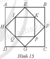 Hình vuông ABCD có cạnh bằng 1, người ta nối trung điểm các cạnh liên tiếp của nó để tạo thành tứ giác EFGH, tiếp tục như vậy được tứ giác mới IKPQ (Hình 15). Chứng minh: