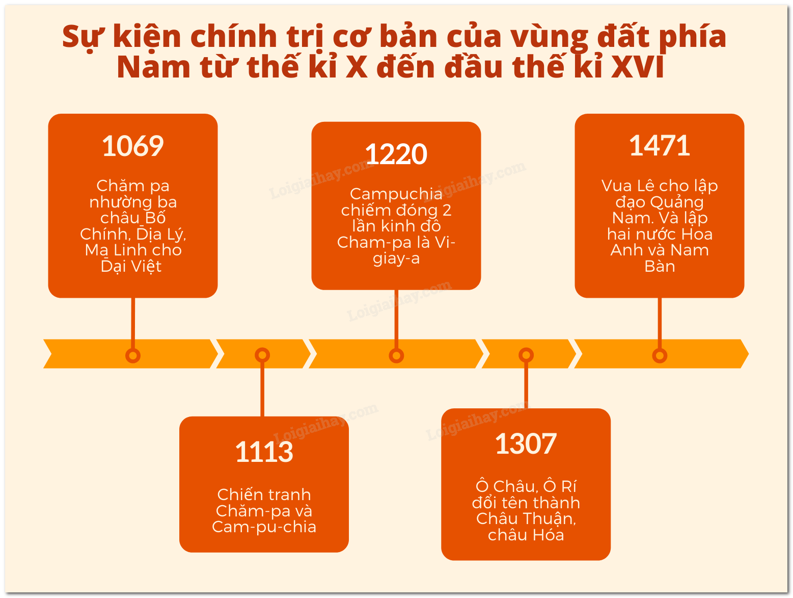 Nêu những diễn biến cơ bản về chính trị của vùng đất phía Nam từ đầu thế kỉ X đến đều thế kỉ XVI.