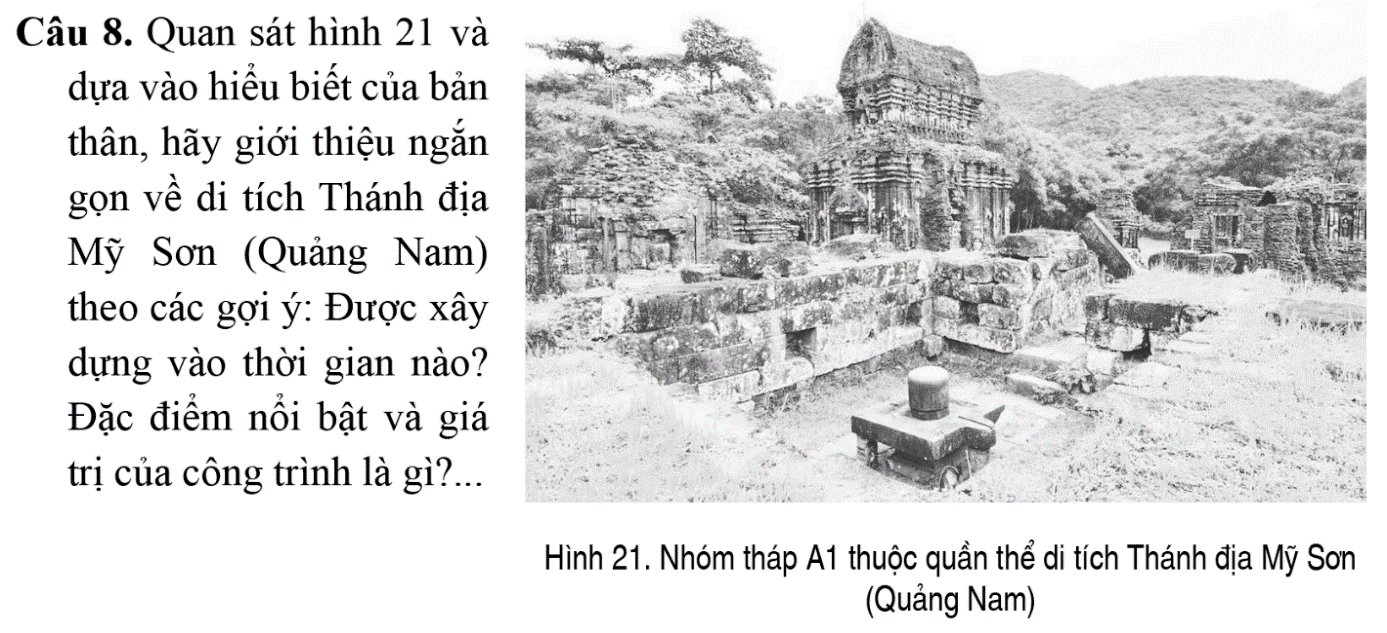 - Thánh địa Mỹ Sơn (Quảng Nam) được xây dựng vào khoảng thế kỉ X, là một quần thể gồm nhiều di tích.