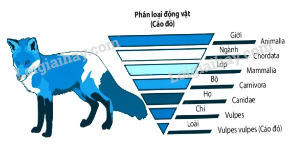 Quan sát sơ đồ các bậc phân loại loài Cáo đỏ trong hình sau và cho biết: