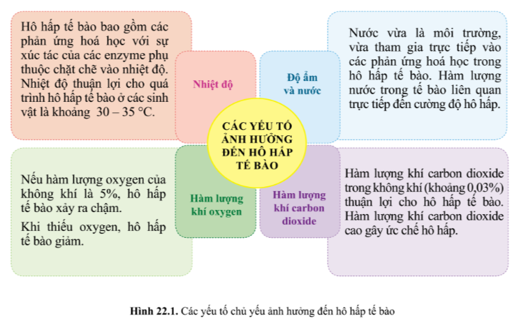 Câu hỏi 1 Quan sát hình 22.1, nêu các yếu tố chủ yếu ảnh hưởng đến hô hấp tế bào.