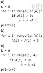 b) Mỗi phần tử của danh sách A sau câu lệnh này được cộng thêm 3, nghĩa là A = [4, 1, -0.5, 7, 9, 0.5].
