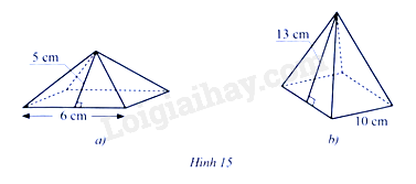 Tính diện tích xung quanh của hình chóp tứ giác đều ở mỗi hình 15a, 15b: