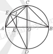 Ta có \(\widehat {AEI} = \widehat {AKI} = {90^o}\) nên tứ giác EIKA nội tiếp đường tròn đường kính AI.
