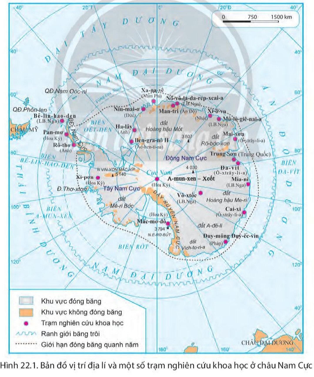 - Kể tên các biển và đại dương bao quanh châu Nam Cực.
