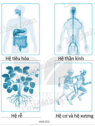 Câu hỏi 23.2. Hãy viết tên các hệ cơ quan được thể hiện trong Hình 23.2 cho phù hợp.