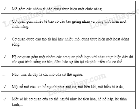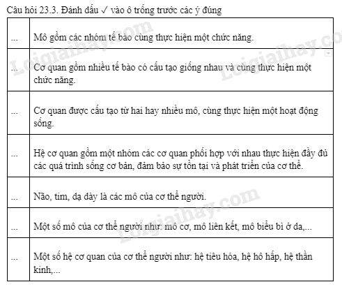 Đánh dấu ✓ vào ô trống trước các ý đúng