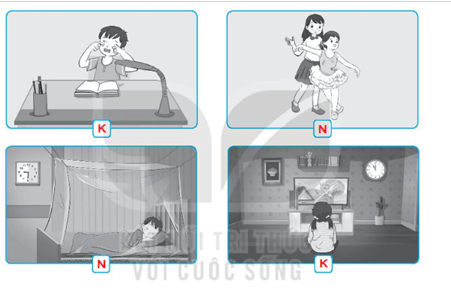Hãy viết chữ N vào những việc nên làm và chữ K vào những việc không nên làm trong các hình dưới đây.